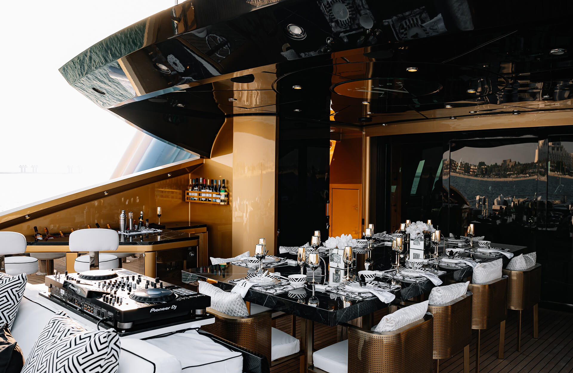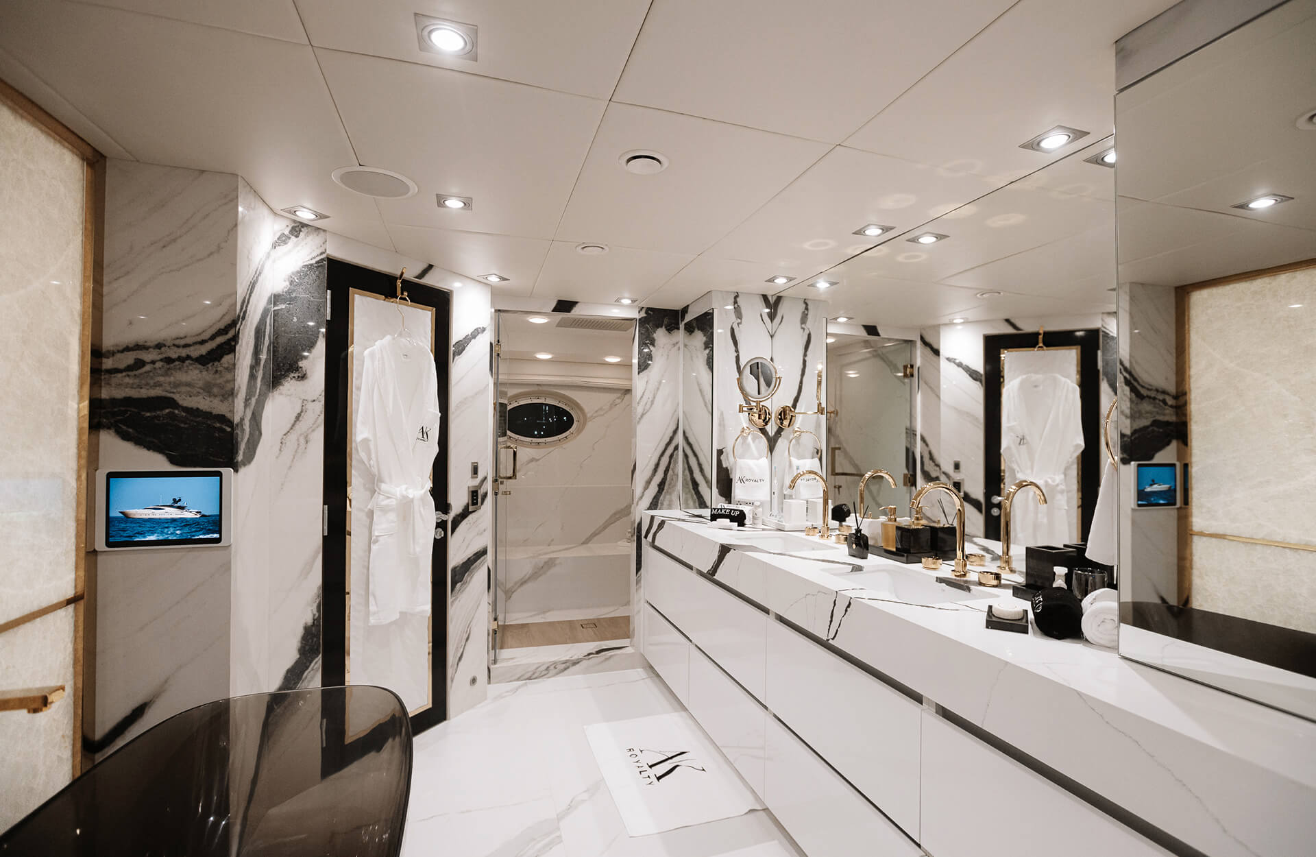 Rent the eye-catching “AK Royalty” yacht in Dubai, a Luxury Superyacht uniquely finished with real gold flakes that shimmer under the sun – perfect for guests who want a statement-making sea experience. With spacious decks, chic seating areas, and a versatile layout ideal for relaxed cruising or social gatherings, it’s suited for celebrations, sunset charters, and memorable group outings along Dubai’s stunning coastline. Book through Dubai Yacht Rental today and enjoy an unforgettable outing aboard the “AK Royalty” yacht.