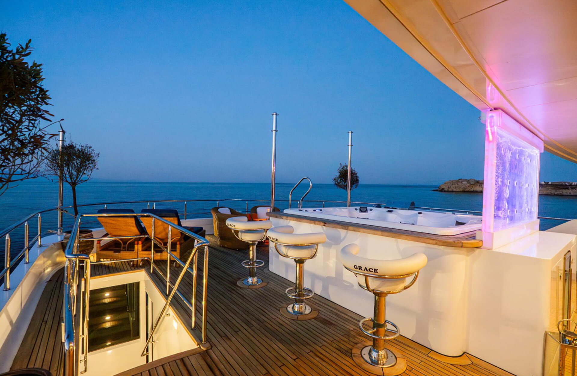 Step into the extraordinary aboard “Grace” yacht in Dubai, a finest-in-class luxury superyacht offering an enormous and versatile deck layout ideal for grand scale events. At an impressive 197 feet in length, this vessel boasts expansive entertaining space, sleek design, and premium features – including optional slide and inflatables for added fun. Whether hosting a corporate launch, product unveiling, wedding extravaganza, or elite celebration, “Grace” yacht sets a new standard for spectacle on the water. Book through Dubai Yacht Rental today and elevate your event to unforgettable heights aboard “Grace”.